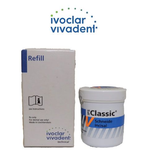 IPS Classic metal-ceramic exhibits excellent modeling properties and high stability, even after several firing cycles. These incisal materials owe their vitality and shade brilliance to the coordinated distribution of grain sizes and the opalescent effect.